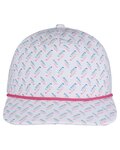 - Slightly curved bill with contrasting rope braid